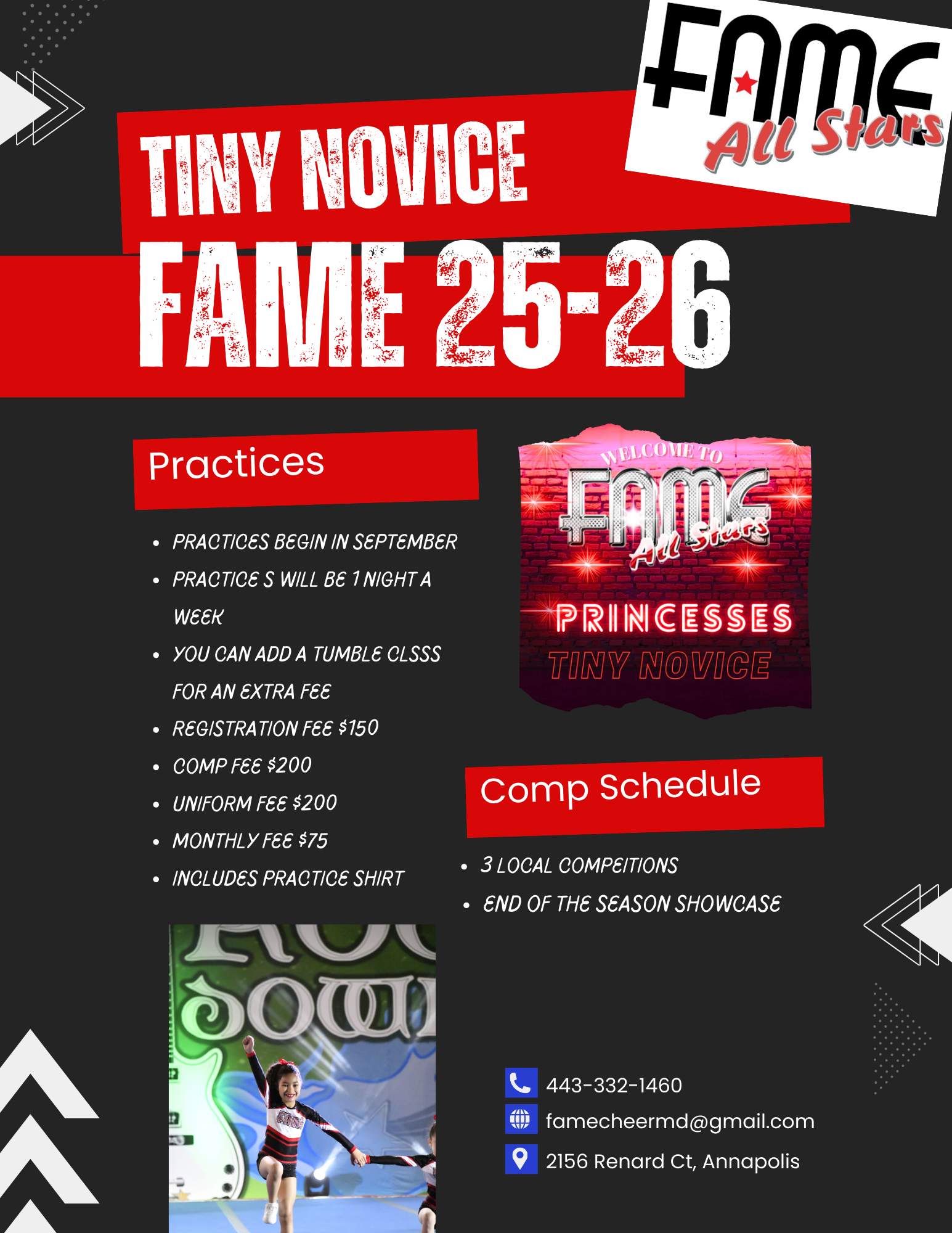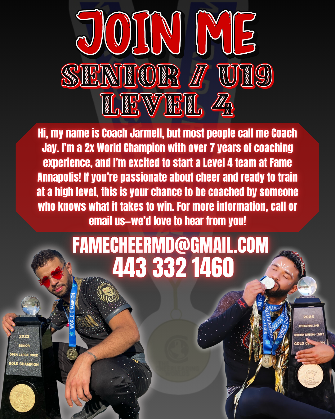 Our mission is to teach a safe skills progression with a strong focus on proper technique. Our love for cheerleading can easily be seen and felt the moment you walk into our facility. Joining Fame Annapolis is joining one of the nations top cheer program FAME!!! You can feel the family as soon as you step foot in the door!