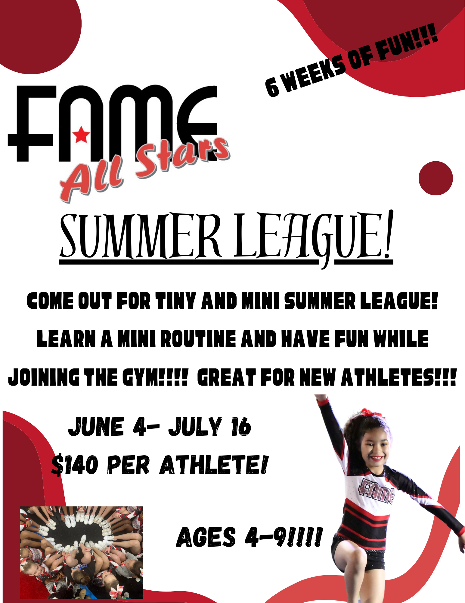 Join us for Season 6 Team placements in May! Great coaches, new divisions, and teams are coming to the lineup. We offer elite travel and nontravel options, tumbling classes, stretch classes, and new camp options.